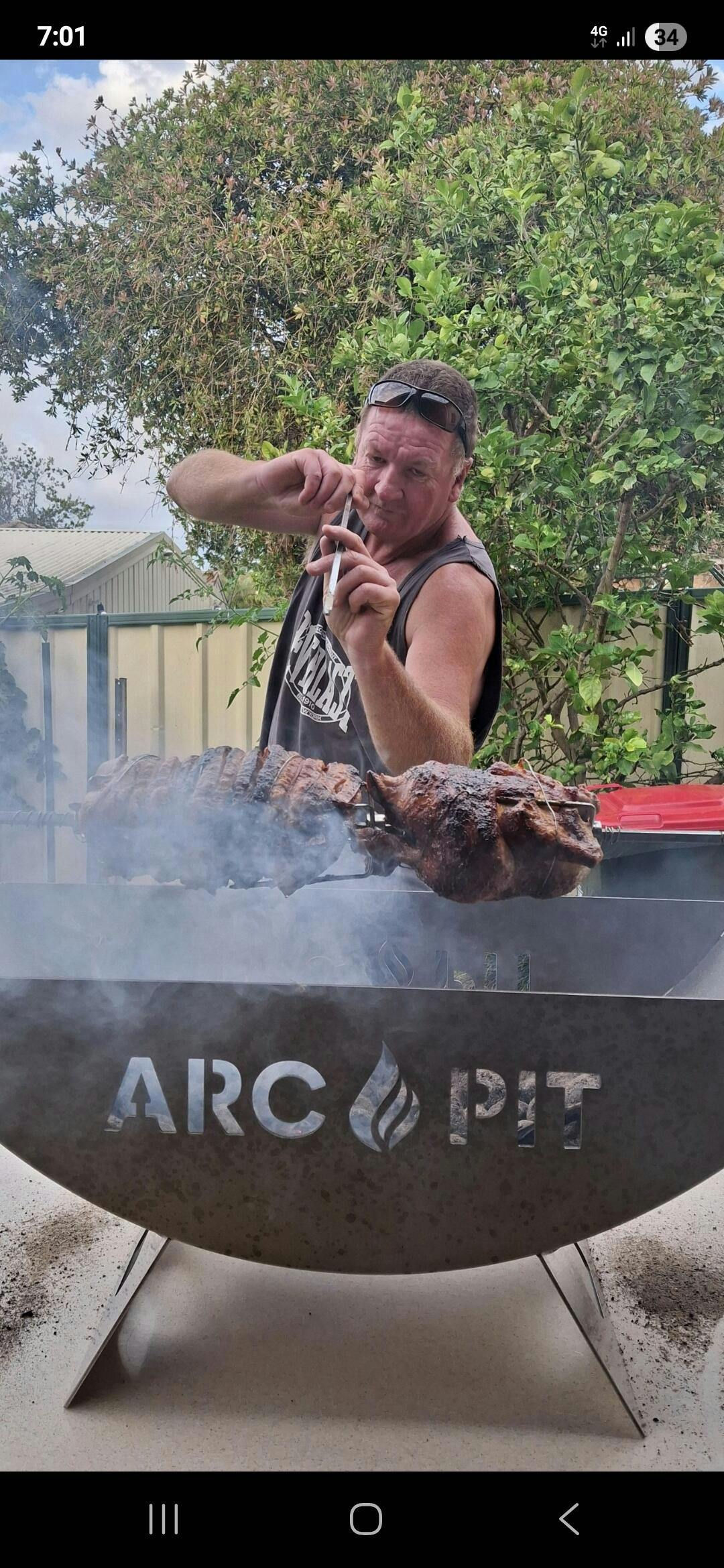 Hi guys, my wife got me theArcPit. Design is great, fits tyre perfect. Cooked with heat beads for the first time? Lamb turned out amazing. Love it guys. Got the extendable legs, great to have it of the ground