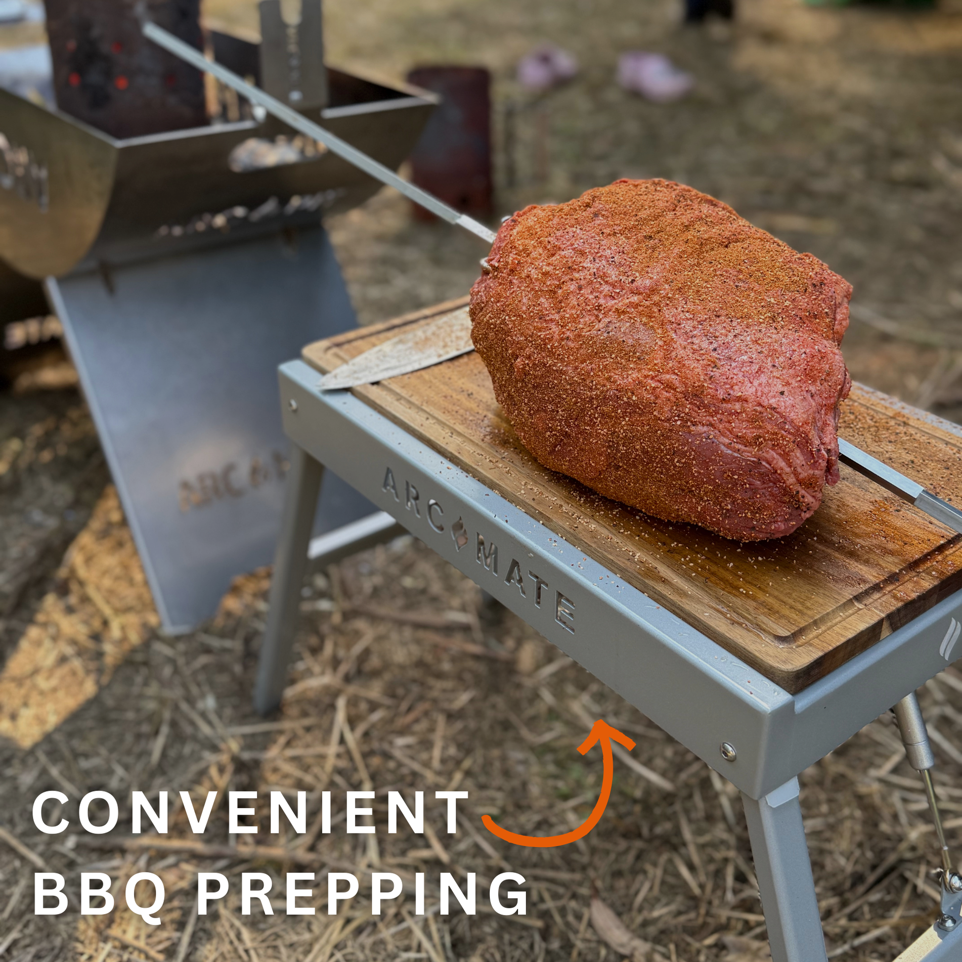 ✔️ Multi-purpose design: comes with a reversible acacia chopping board so you can chop, prepare, carve or use it as a cheese board, coffee table or campfire BBQ serving station.