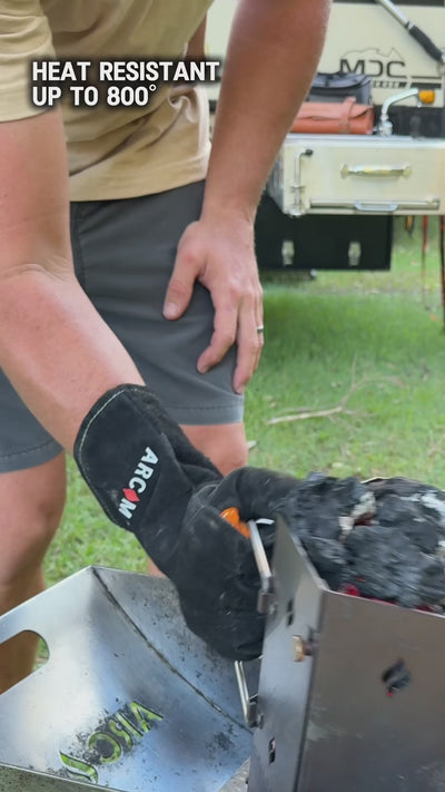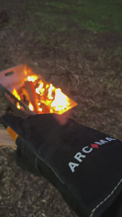 Premium heat resistant one-size fits all gloves, designed for safety and comfort while setting your fire in the ArcPit or using the ArcMate BBQ accessories, these gloves provide the protection you need without compromising dexterity.