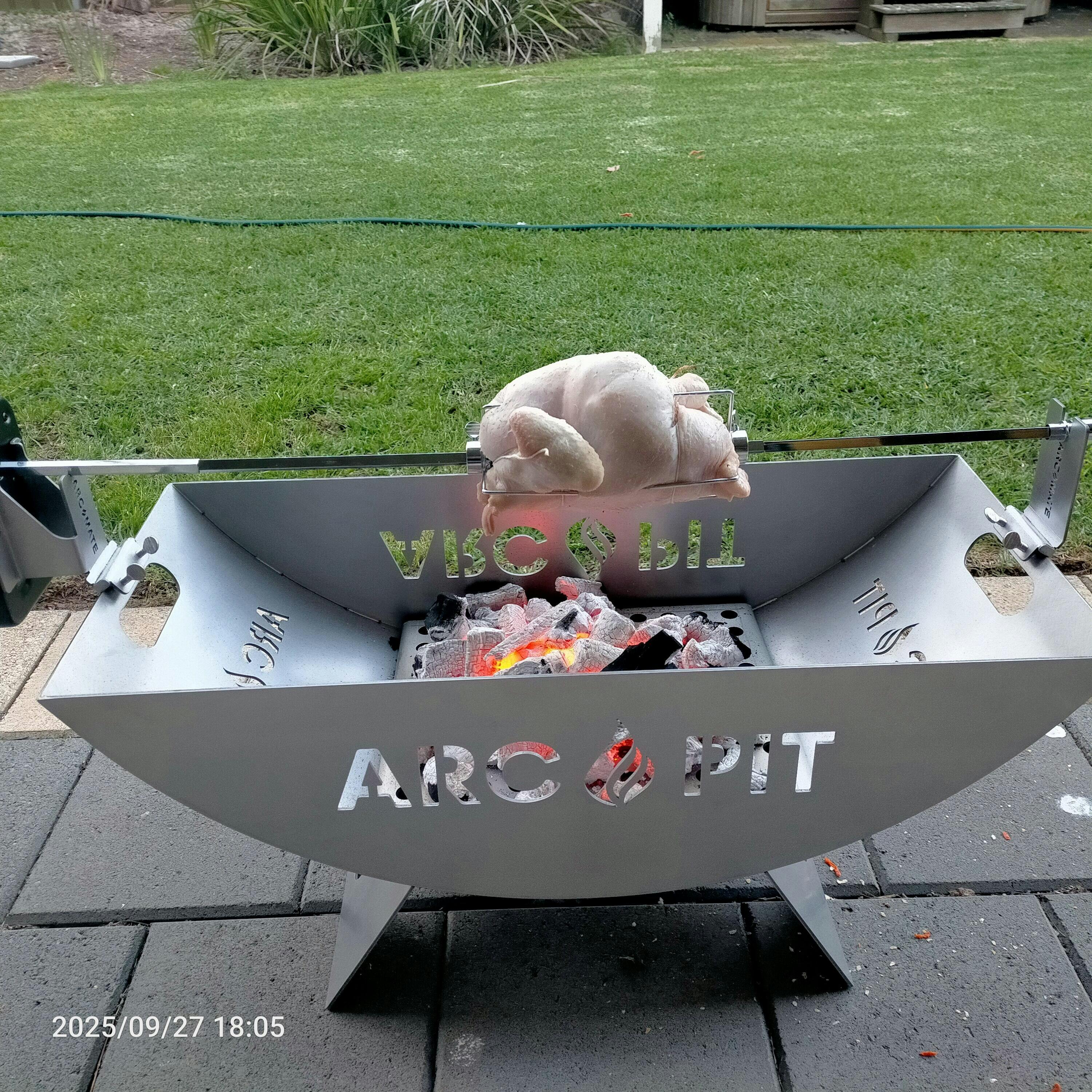 Received the standard AM a couple of weeks ago and rotisseried a chook to christen it . Turned out great but probably need more charcoal, lesson learned.